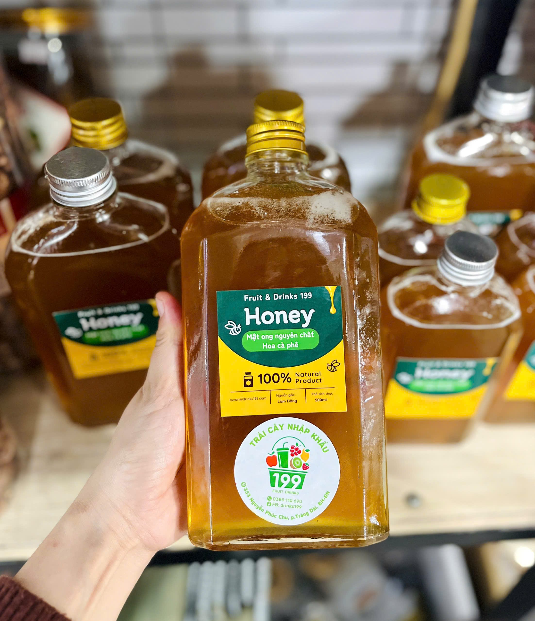 Mật ong nguyên chất 100% tự nhiên không có đường đã được kiểm duyệt test lab để xuất khẩu (80% thị trường mật ong Việt Nam dùng đi xuất khẩu), bên 199 em được hàng từ chị gái chủ doanh nghiệp hỗ trợ cho bán nội địa theo tiêu chuẩn quốc tế với giá ưu đãi. Mật ong nguyên chất gồm: